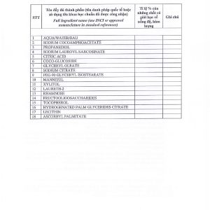 - Làm sạch dịu nhẹ: Chất diện hoạt dẫn xuất dầu dừa làm sạch nhẹ nhàng, không gây kích ứng và bảo tồn lớp màng lipid nước.