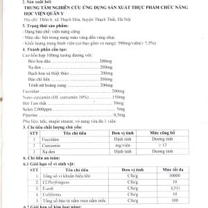 | 2 | Curcumin | mg/viên | ≥ 12 |